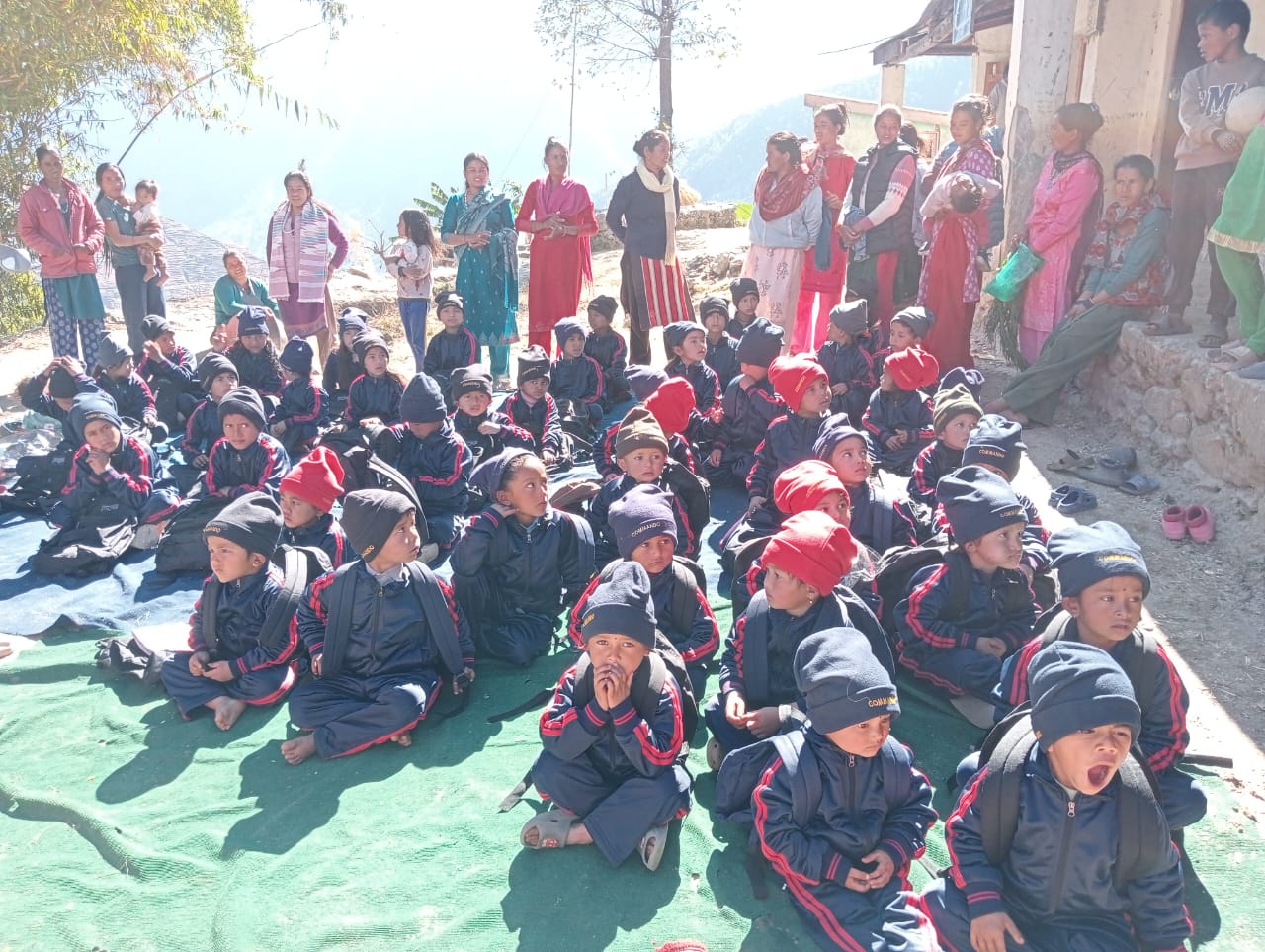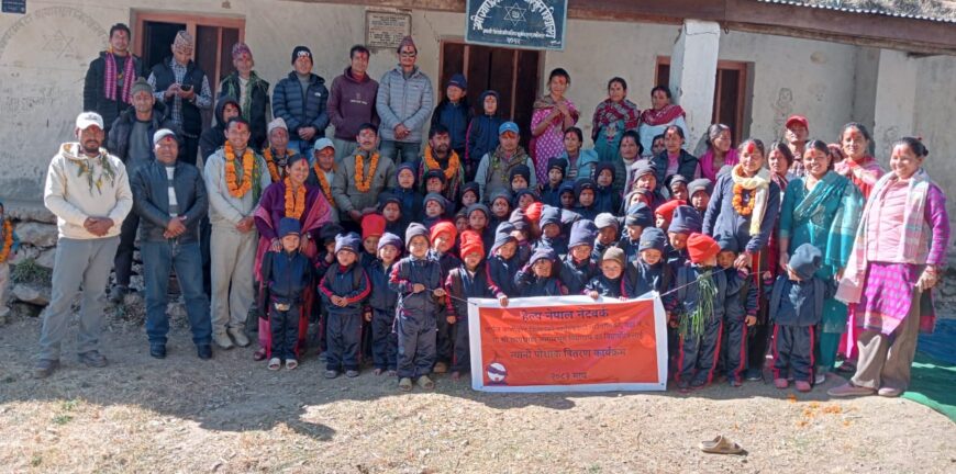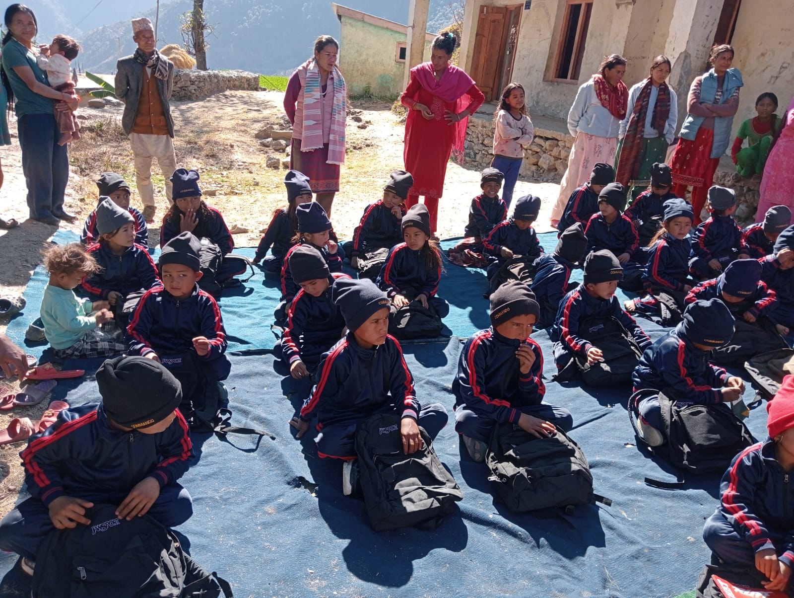 HELP NEPAL Network successfully distributed 53 set of tracksuits to students from ECD to Grade 5 at Shree Khaparmasta Adharbhut Vidyalaya, located in Kalikot District, Sanni Triveni Rural Municipality–Ward No. 5. This support was provided to help students stay warm during the cold season and to promote their comfort and motivation toward education.