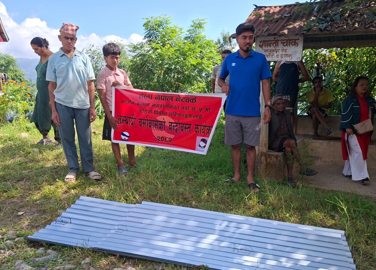 HeNN distributed zinc sheets in Ward No. 5 and Ward No. 6 of Ilam Municipality to support affected families in rebuilding temporary shelter. This initiative aims to provide immediate relief and ensure safe housing for those impacted by the recent disaster.